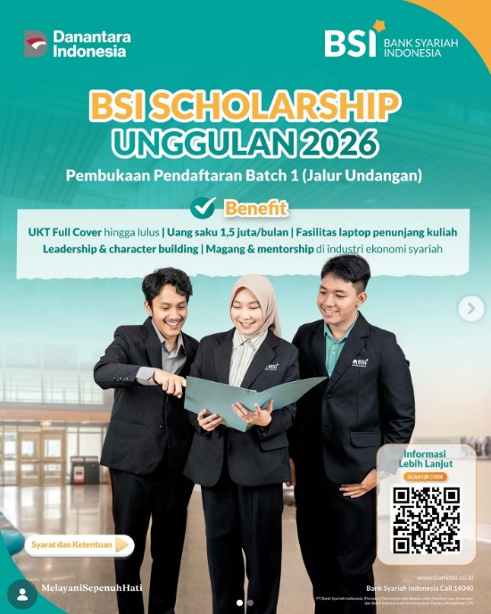 BSI Scholarship Unggulan 2026: Pendaftaran Jalur Undangan Dibuka 2-12 April, UKT Full Cover + Uang Saku!