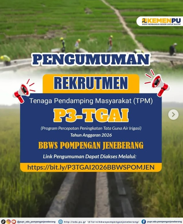 Pengumuman Rekrutmen Tenaga Pendamping Masyarakat (TPM)Program Percepatan Peningkatan Tata Guna Air Irigasi (P3-TGAI)Tahun Anggaran 2026 BBWS Citarum