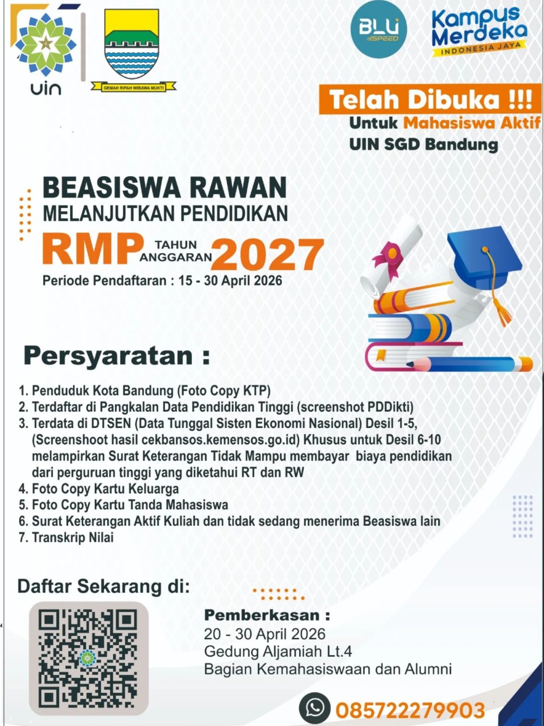 Beasiswa Rawan Melanjutkan Pendidikan (RMP) TA 2027 untuk Mahasiswa Aktif UIN SGD Bandung