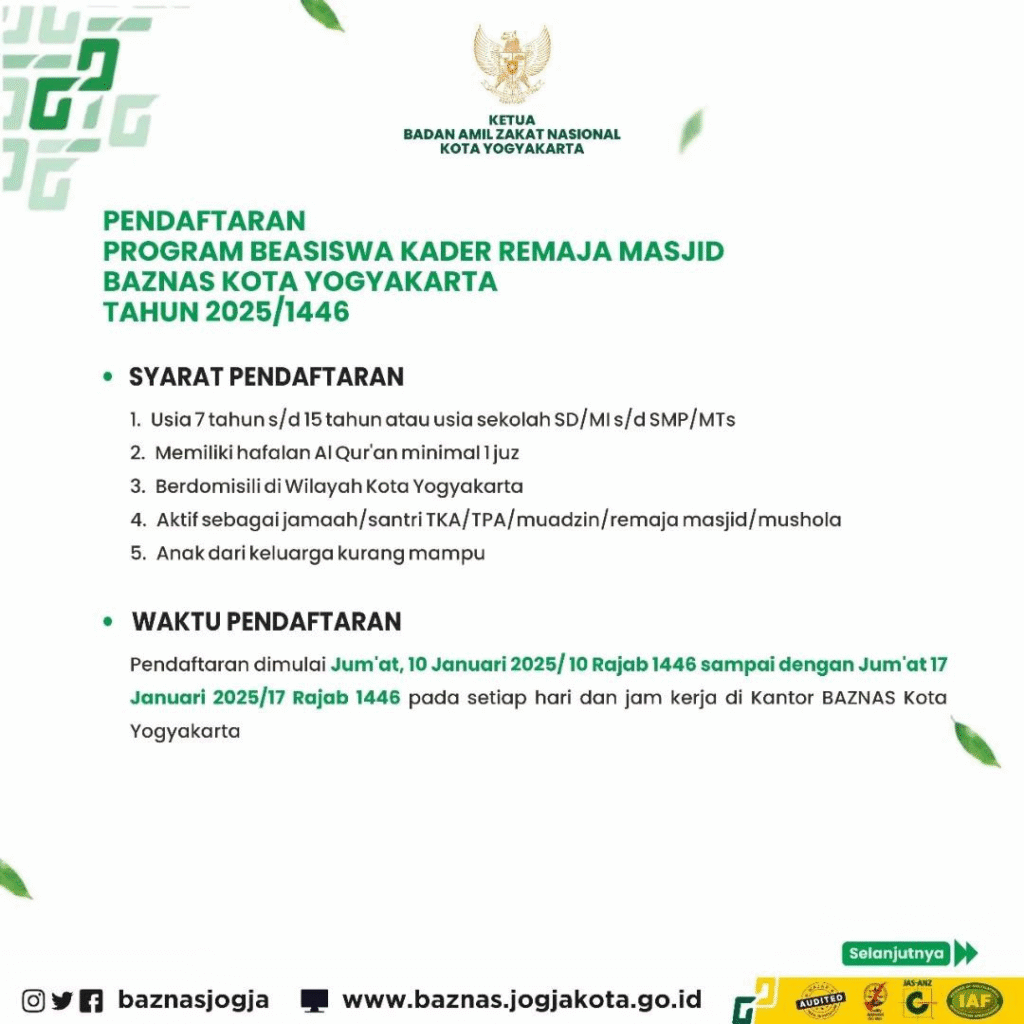 Home Beasiswa Pendaftaran Program Beasiswa Kader Remaja BAZNAS Kota Yogyakarta Tahun 2025/1446