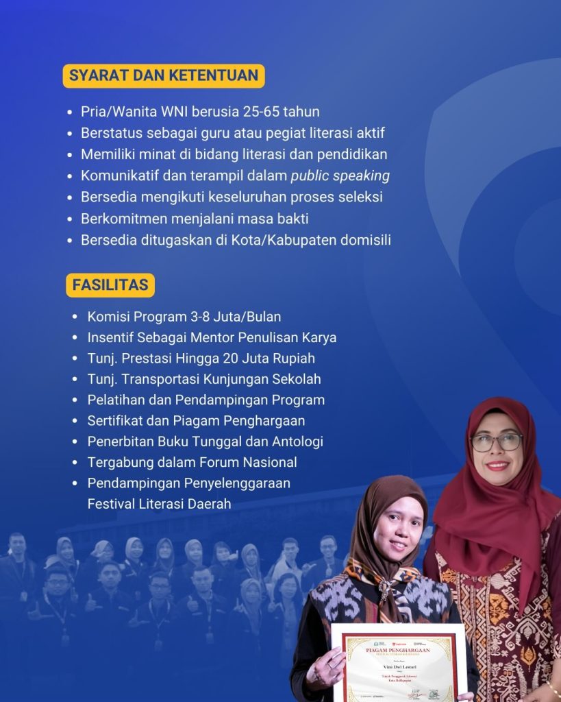 - Memiliki minat dan passion yang kuat di bidang literasi dan pendidikan.
