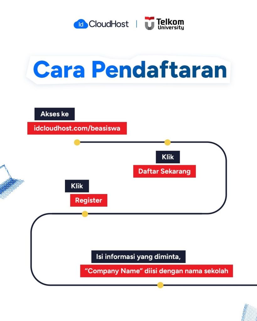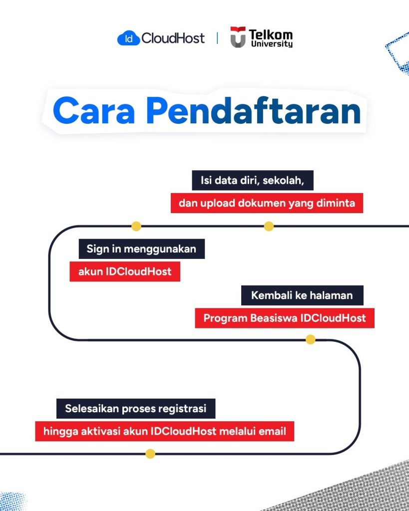 - Pendaftaran paling lambat dilakukan tanggal 31 MEI 2026. Panduan pendaftaran Beasiswa IDCloudHost juga bisa disimak pada link berikut: https://idcloudhost.com/panduan/faq-alur-pendaftaran-beasiswa-idcloudhost.