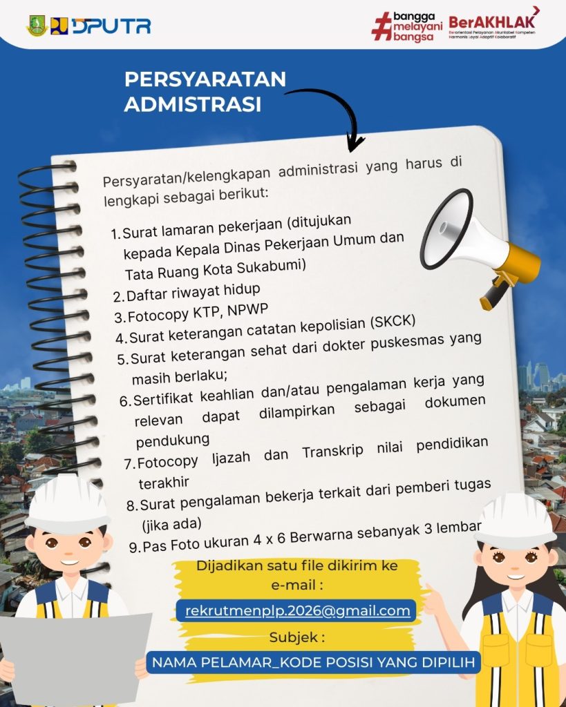 1. Surat Lamaran Kerja: Ditujukan kepada Kepala Dinas Pekerjaan Umum dan Tata Ruang Kota Sukabumi.