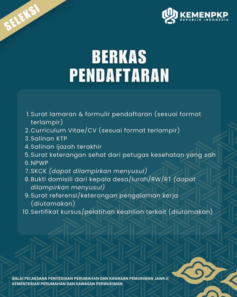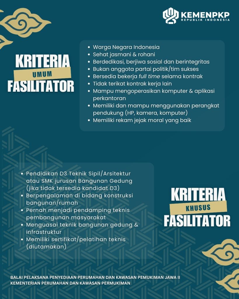 Pekerjaan : Seleksi Fasilitator Teknik Program BSPS Balai Pelaksana Penyediaan Perumahan dan Kawasan Permukiman Jawa II Tahun Anggaran 2026