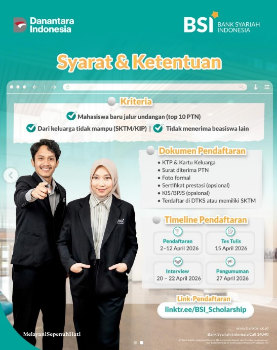 🔗 Link Pendaftaran: linktr.ee/BSI_Scholarship