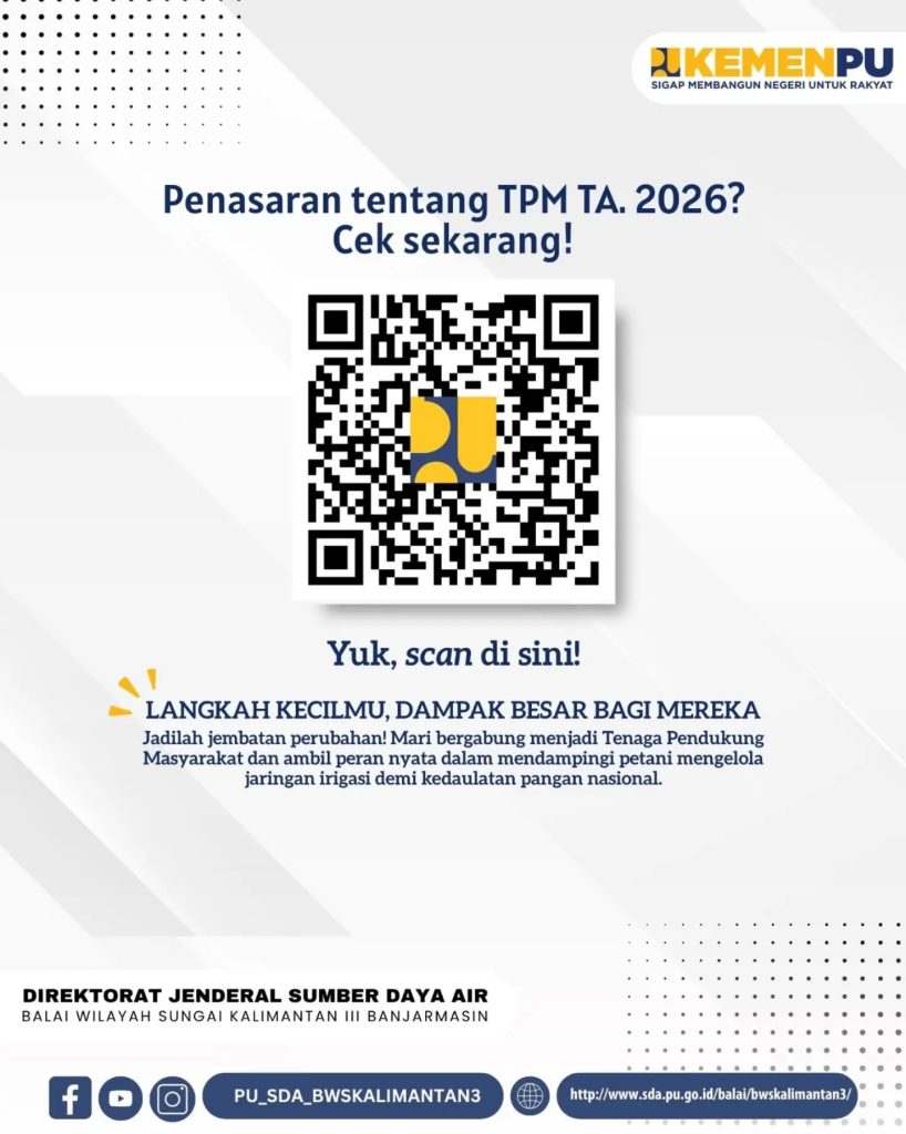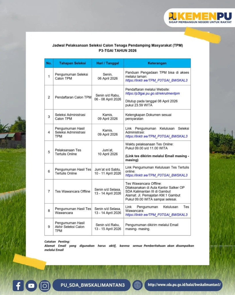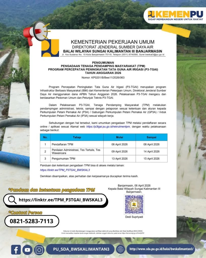 CENGOS.IN – Pendaftaran Pengadaan Tenaga Pendamping Masyarakat (TPM) Program Percepatan Peningkatan Tata Guna Air Irigasi (P3-TGAI)