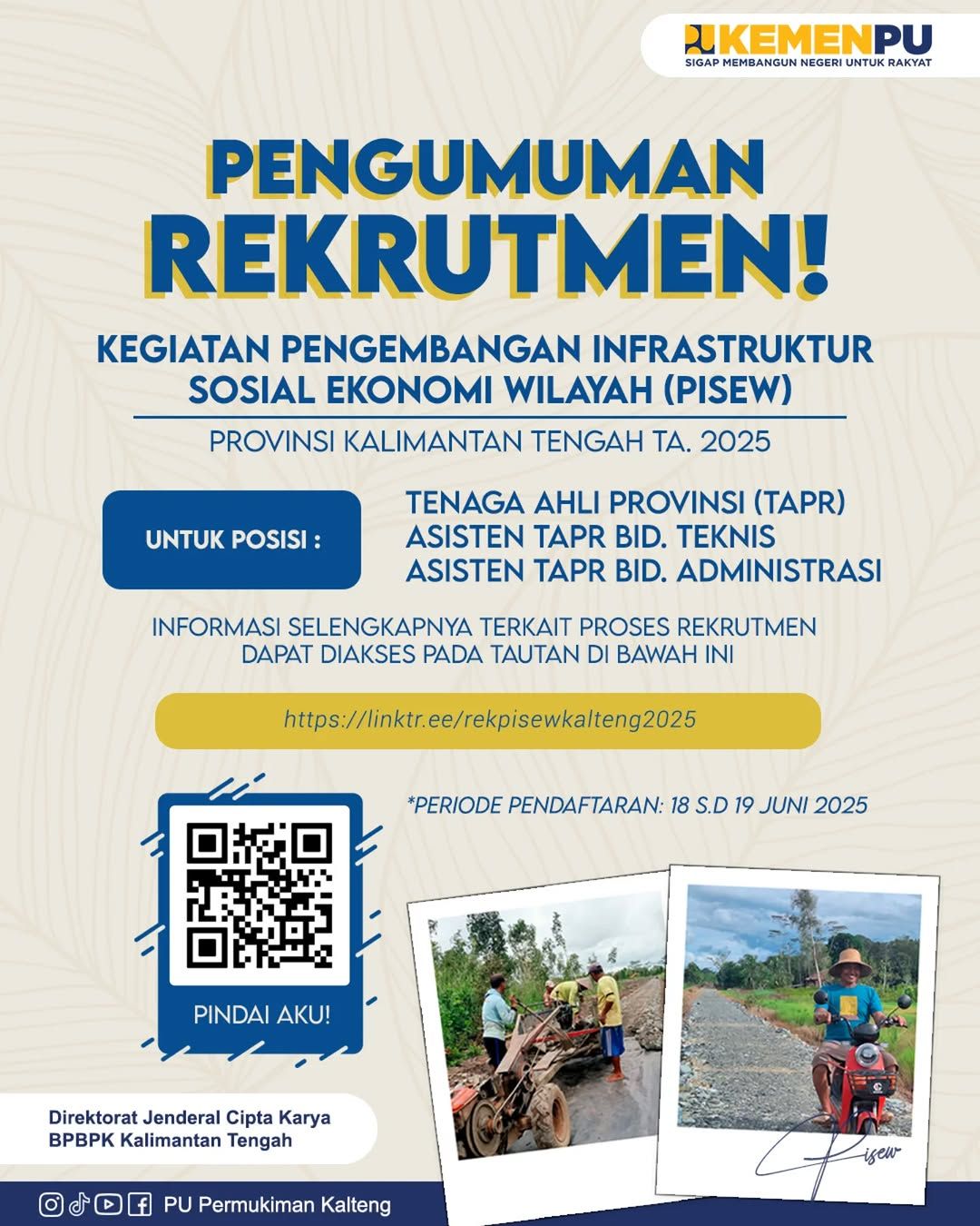 Pengumuman Rekrutmen Kegiatan Pengembangan Infrastruktur Sosial Ekonomi Wilayah (PISEW) Provinsi Kalimantan Tengah TA 2025
