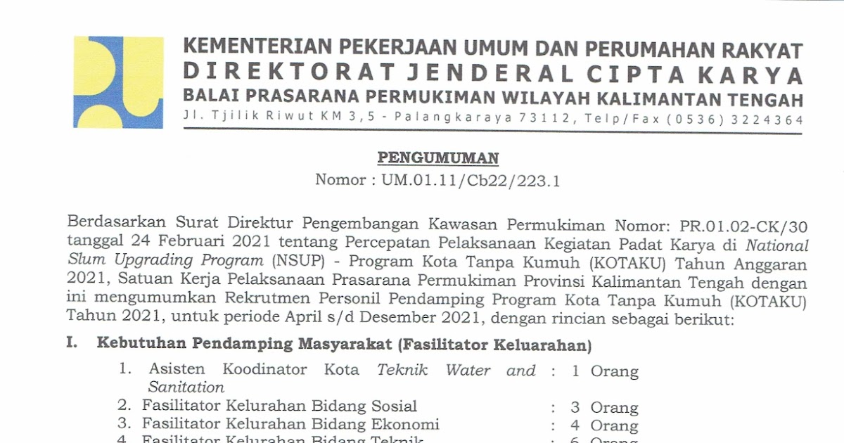 Promosi, Seleksi dan Rekrutmen Personil Pendamping Program KOTAKU Prov. Jawa Tengah TA. 2021